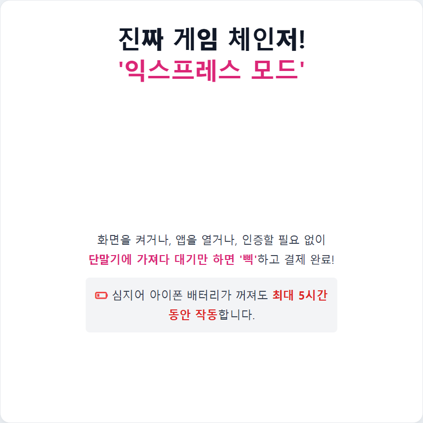 | 핵심 기능 | '익스프레스 모드' (화면 켤 필요 없이 바로 태그) |